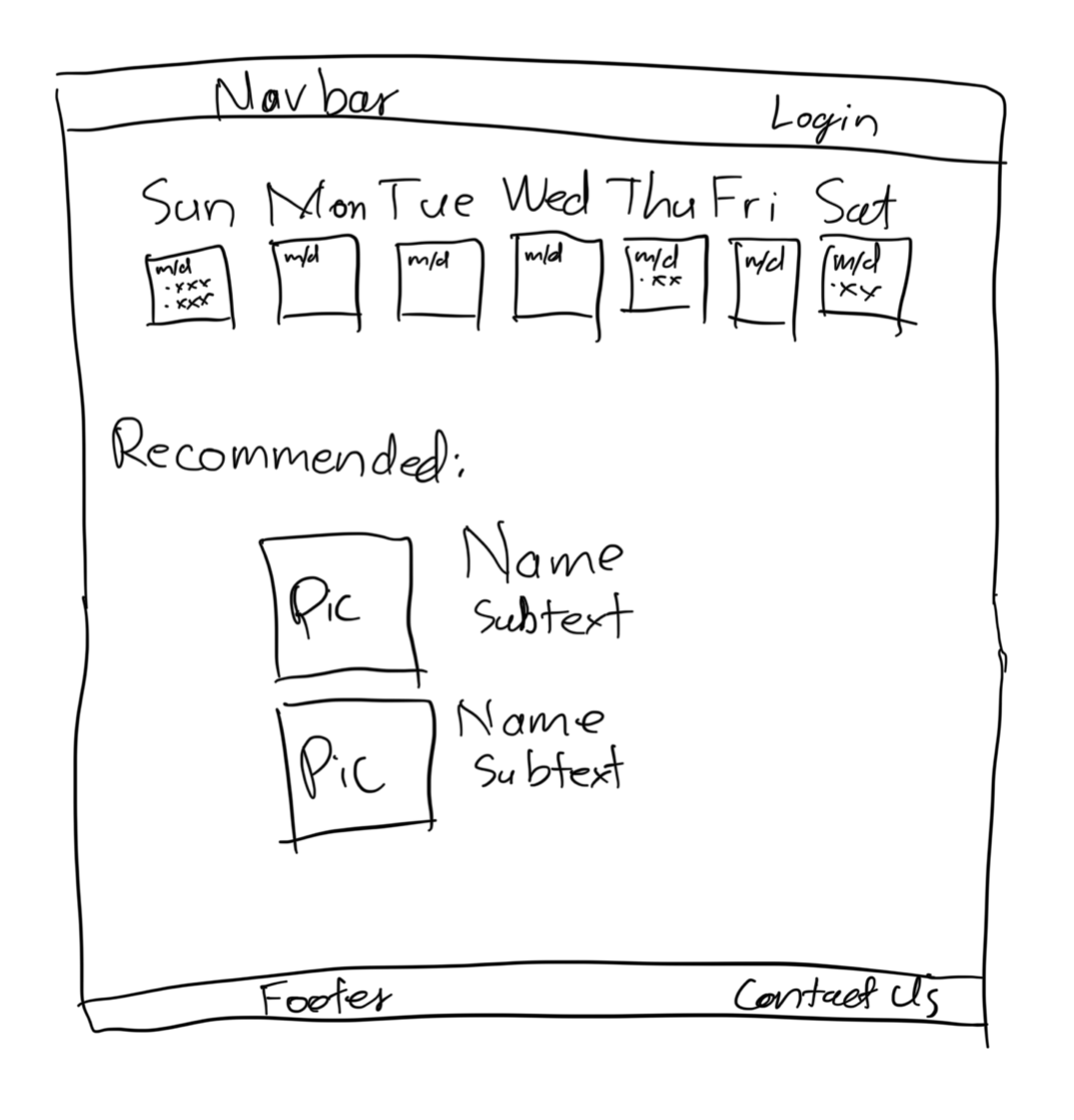 After milestone 1, the basic mockup has been designed and some elementary features promised in the mockup. Milestone 1 was a major part of this page's development since it had set the foundation of the looks for the page. A large part of this milestone was creating components with CSS and Bootstrap-React. The Calendar contained all seven days as well as some test strings within it. I had also included scrollable in the card component to prevent the card resizing. The Recommended component is what I thought would be the best for users to see.